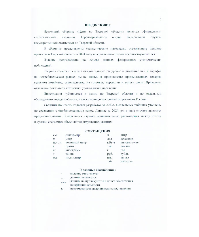 Цены по Тверской области в 2024 году : статистический сборник / Федер. служба гос. статистики, Террит. орган Федер. сужбы гос. статистики по Твер. обл. (Тверьстат) ; ред. Е.С. Иванова. - Тверь : Тверьстат, 2025. - 93 c. : цв. ил., табл.