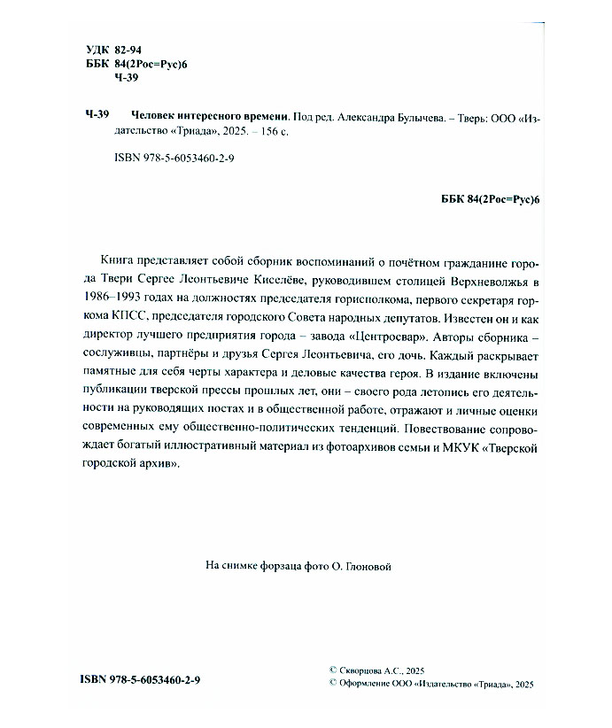 Человек интересного времени / под ред. Александра Булычева. - Тверь : Триада, 2025. - 155 с. : ил., портр., факс. Эту книгу вы можете найти в отделах Краеведческий информационный центр 2026 История