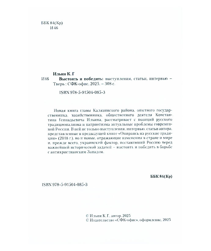 Ильин К.Г. Выстоять и победить : (выступления, статьи, интервью) / Константин Геннадьевич Ильин. - Тверь : СФК-офис, 2025. - 307 с. Эту книгу вы можете найти в отделах Краеведческий информационный центр 2026 История