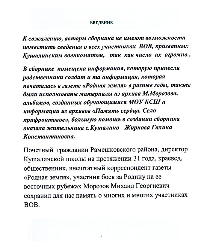 Они сражались за Родину. Кушалинцы – участники Великой Отечественной войны 1941–1945 гг.: Письма, статьи, воспоминания / Рамешковский РДК, Кушалинский СДК (филиал) ; сост.: Л.С. Черкасова, В.В. Рахманова. – Кушалино ; [Тверь : Триада], 2025. – 184 с. : фот. – (В год 80-летия Победы в Великой Отечественной войне).