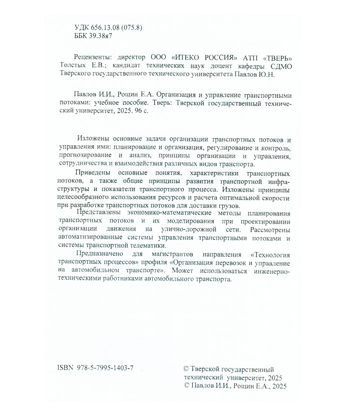 Павлов И.И. Организация и управление транспортными потоками : учеб. пособие / И. И. Павлов, Е. А. Рощин ; Минобрнауки России, Твер. гос. техн. ун-т. - Тверь : ТГТУ, 2025. - 95 с. : граф. You must have JavaScript enabled to use this form. Эту книгу вы можете найти в отделах Отдел обслуживания пользователей и хранения основного фонда Отдел патентно-технической и экологической информации 2026 Экономика