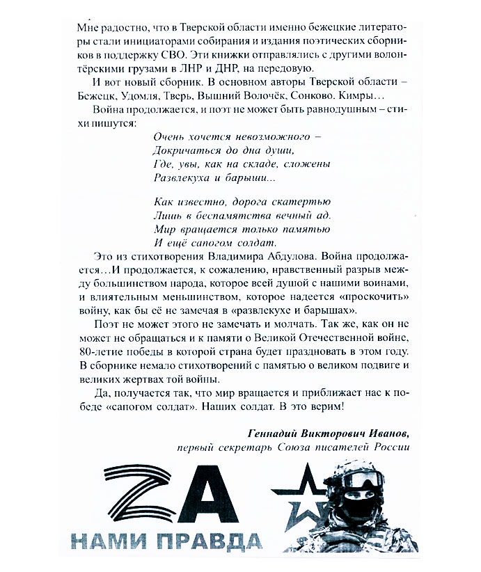 Время выбрало нас! : поэтический сборник / ред. кол.: Иванов Г. В. [и др.] ; вступ. ст.: Г. В. Иванов. - Тверь : Издатель Козырев В. В., 2025. – 122 с. : ил. - (Тверской край : События. Люди. Судьбы : краевед. альм. / ред.: В. В. Козырев ; вып. 161).