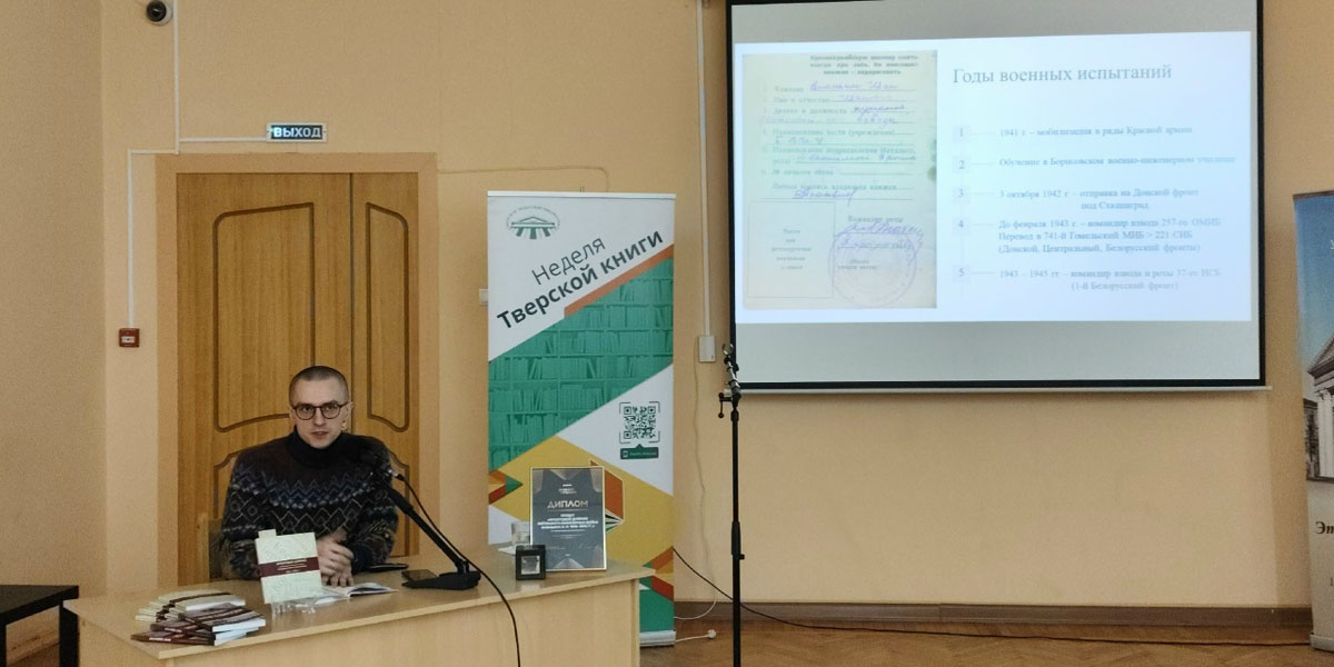 Заместитель директора по научной работе ГАТО Андрей Александрович Павлов рассказал гостям встречи о том, как попал в архив этот уникальный материал, а именно записная книжка, которую Иван Иванович носил в гимнастерке, и объединенная уже после войны общая тетрадь, куда он аккуратно переписал все фронтовые заметки и письма родным. Все эти материалы вошли в издание. Слушатели узнали не только о подробностях боевого пути лейтенанта, но и о его семье, жизни до и после войны, в том числе активной педагогической деятельности.