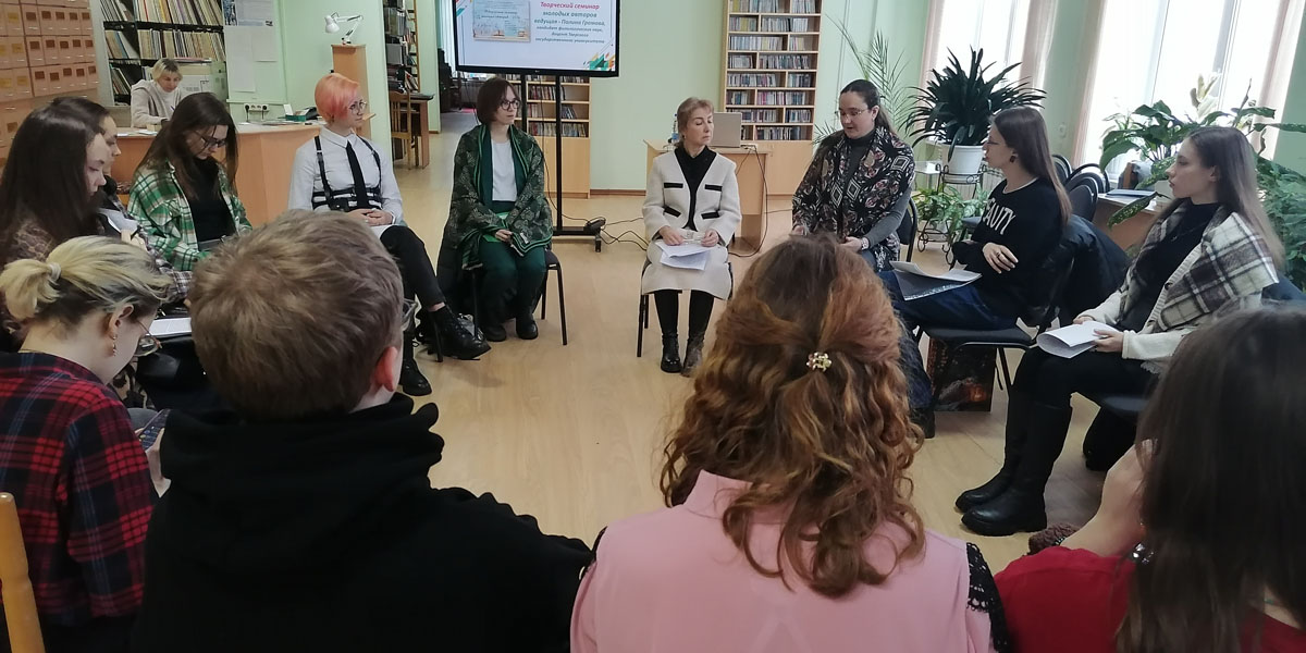 В дни Недели тверской книги традиционно проводится ежегодный Творческий семинар молодых авторов. Семинар подготовлен кафедрой филологических основ издательского дела и литературного творчества Тверского государственного университета совместно с Тверским отделением Союза писателей России и Тверской областной универсальной научной библиотекой им. А.М. Горького.